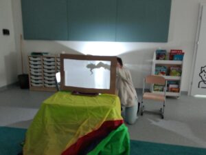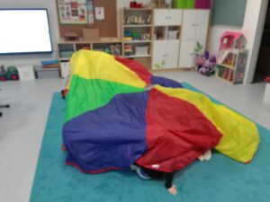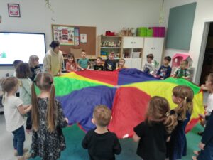 Dziś Grupę ŻABKI odwiedził kolejny Czuciak czyli Bojek z Wyspy Strachu. Obejrzeliśmy krótką bajkę o Jasiu, który bał się cieni za oknem. Zgadywaliśmy czego boją się dzieci oglądając Teatrzyk Cieni oraz dyskutowaliśmy o własnych lękach. Podczas zabawy z chustą Klanzy reagowaliśmy na straszne dźwięki pojawiające się w przygotowanej melodii, chowając się pod kołdrą jak Jaś. Na koniec wykonaliśmy karty pracy, w których naszym strachom dorysowywaliśmy śmieszne elementy, żeby się z nimi oswoić. Zajęcia prowadziła Pani Sylwia Psycholog.