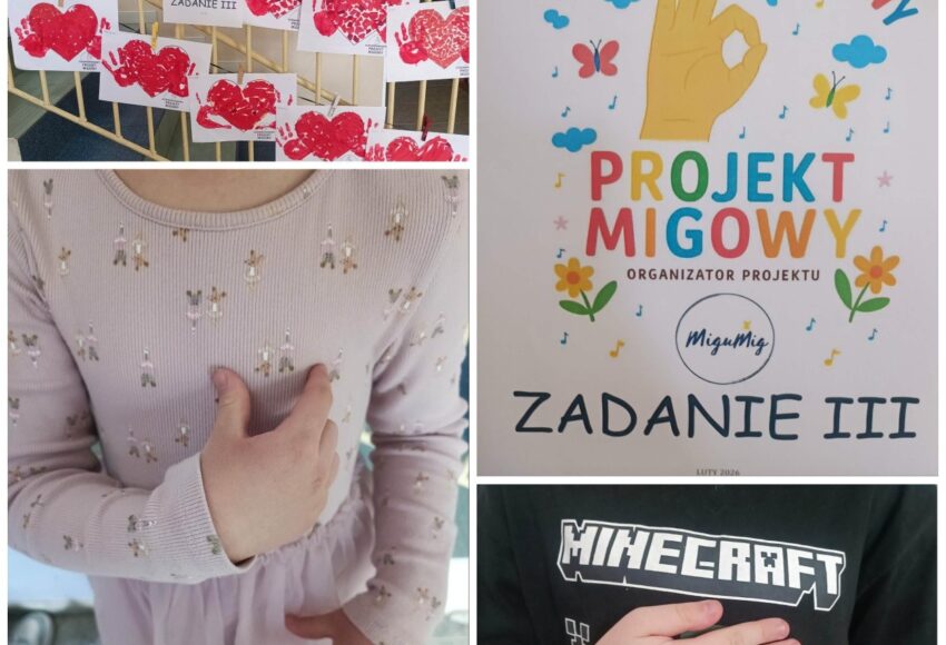 Dzieci z grupy Jagódki w lutym i marcu zrealizowały kolejne zadania w ramach Ogólnorozwojowego Projektu Migowego. Potrafią już zamigać znaki KOCHAM, LUBIĘ i SERCE a także DZIĘKUJĘ, PRZEPRASZAM i PROSZĘ. Znaki utrwalalismy poprzez wierszyk i piosenkę, wykonaliśmy również pracę plastyczną – przy sercu dzieci odbiły swoje dłonie. Nie zabrakło rozmowy […]