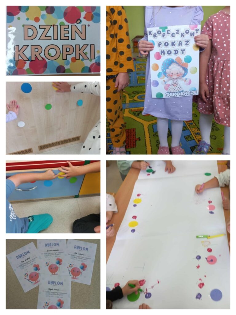 Przedszkolaki obchodziły Międzynarodowy Dzień Kropki – święto kreatywności, odwagi, a także odkrywania talentów. Dzień rozpoczęliśmy od przeczytania historii o małej dziewczynce Vashti, która dzięki jednej kropce odkryła swój talent. Następnie dzieci rozmawiały o swoich talentach i o tym, że warto jest wierzyć w siebie i swoje możliwości. W sali pojawiły